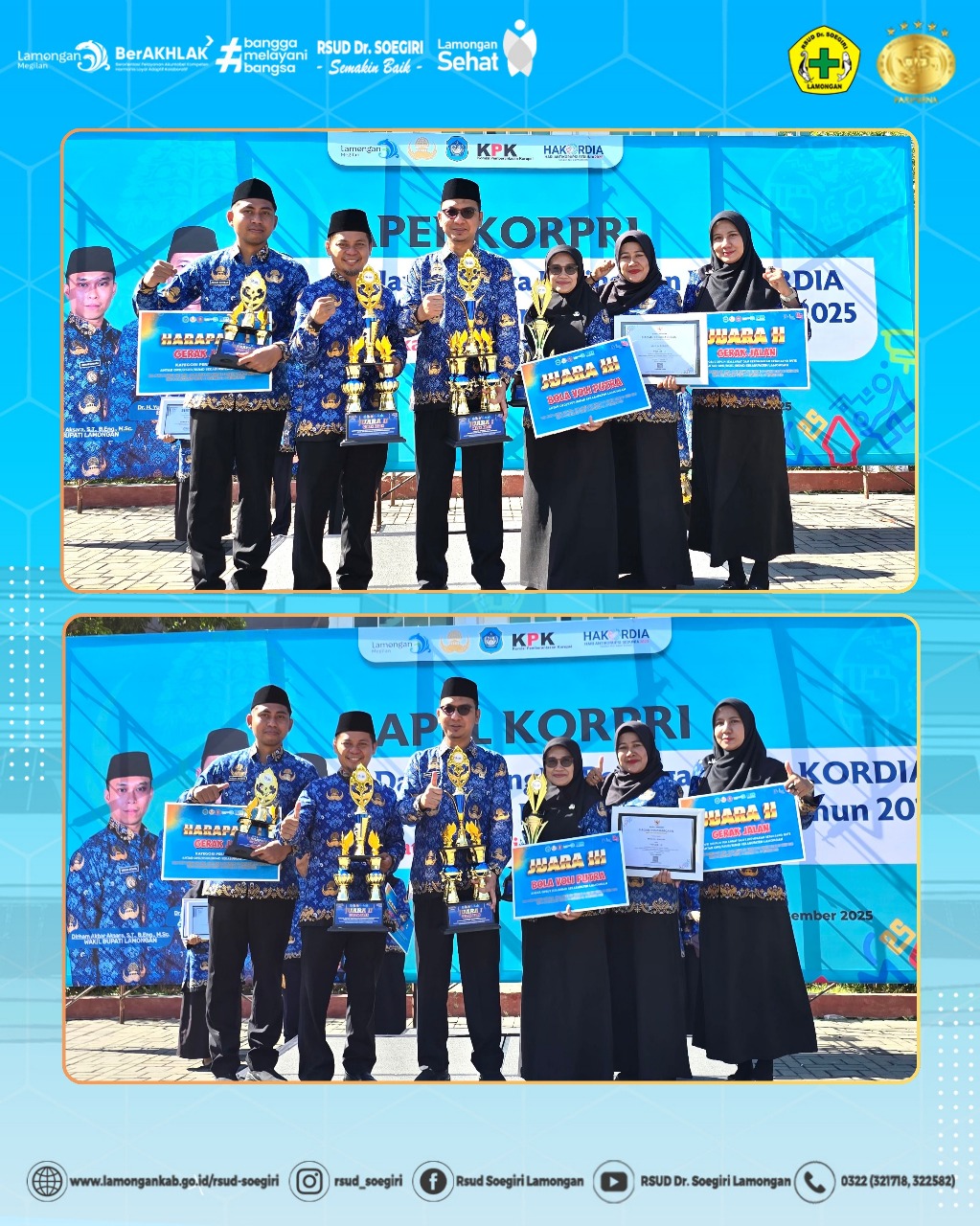 RSUD Dr. Soegiri meraih prestasi dalam rangkaian Lomba HUT KORPRI ke-54. Capaian ini merupakan hasil dari semangat kebersamaan, kedisiplinan, kekompakan, serta kerja sama seluruh insan RSUD Dr. Soegiri yang terus menjunjung nilai profesionalisme dan sportivitas.